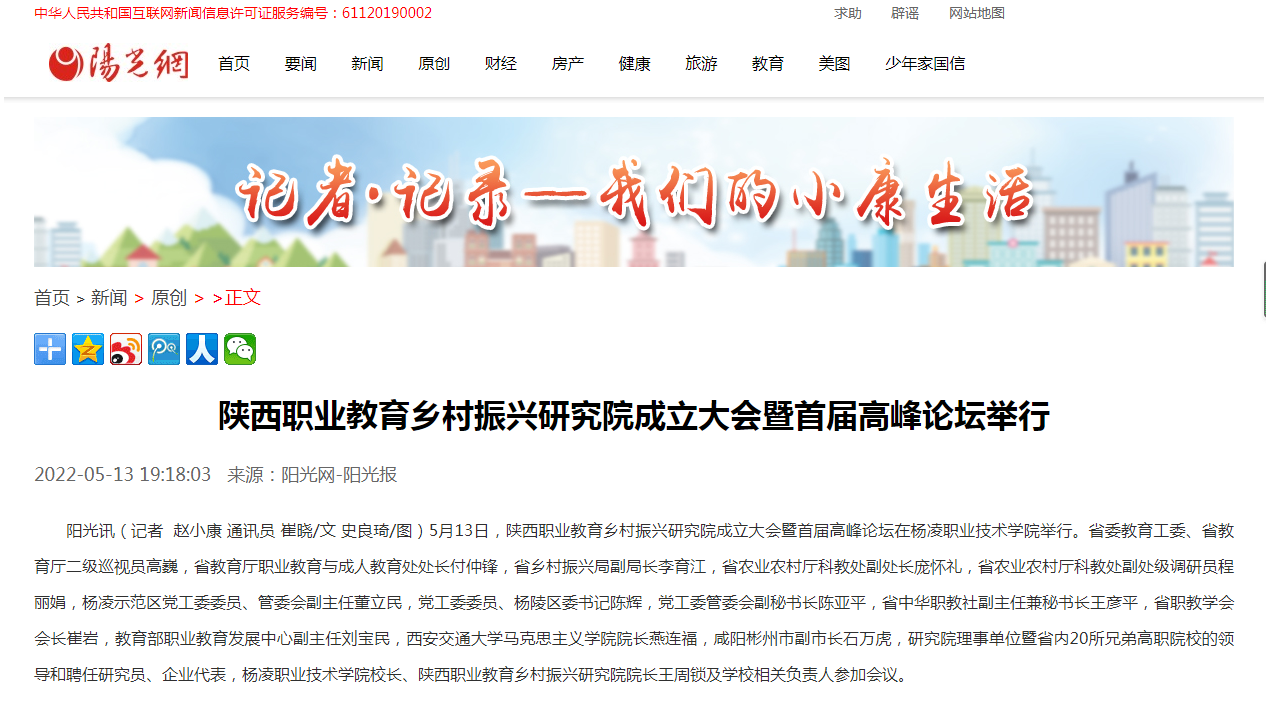 【阳光网】陕西职业教育乡村振兴研究院成立大会暨首届高峰论坛举行