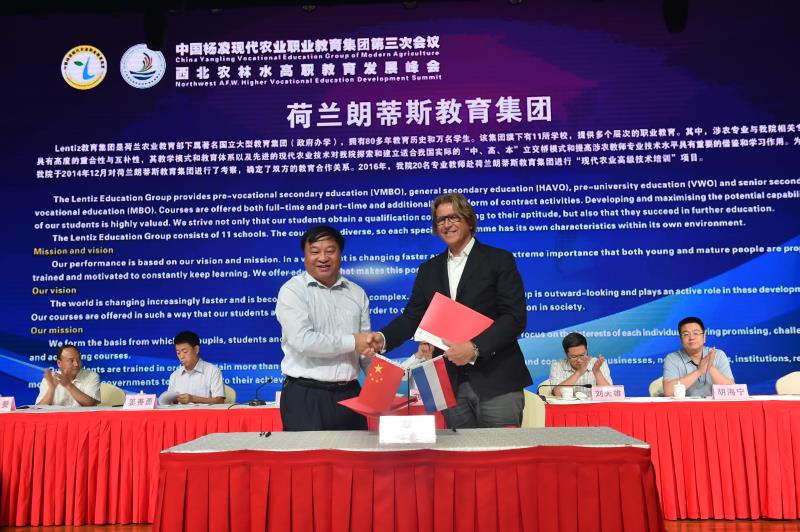 会上,杨凌职业技术学院党委书记赵曼,杨凌示范区党工委委员、管委会副主任刘天雄,教育部职业教育与成人教育司农村教育处处长刘杰,荷兰朗蒂斯教育集团总监范康普博士分别致辞。刘建林、刘天雄、赵曼共同启动“西北农林水高职教育发展峰会”仪式,中国杨凌现代农业职业教育集团秘书长、杨凌职业技术学院副院长、西北农林水高职教育发展峰会秘书长张永良介绍了峰会发起相关情况。中国杨凌现代农业职业教育集团与荷兰朗蒂斯教育集团签订了《开展涉农专业职业教育师资培训和技术咨询》合作备忘录;杨凌职业技术学院与中兴通讯股份有限公司签订了“中兴通信学院”共建协议书,并举行了揭牌仪式。