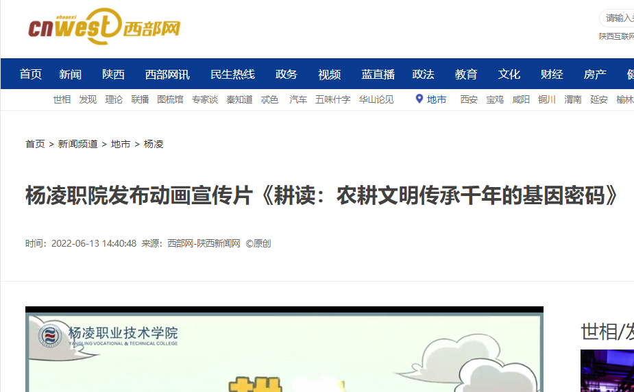 【西部网】杨凌职院发布动画宣传片《耕读:农耕文明传承千年的基因密码》