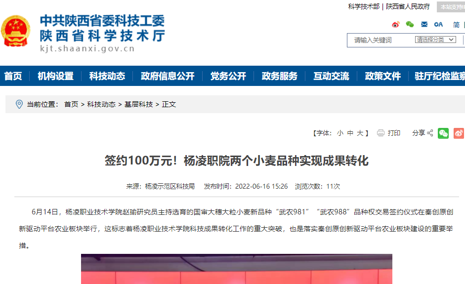 下一条:【二三里】签约100万元!杨凌职院两个小麦品种实现成果转化