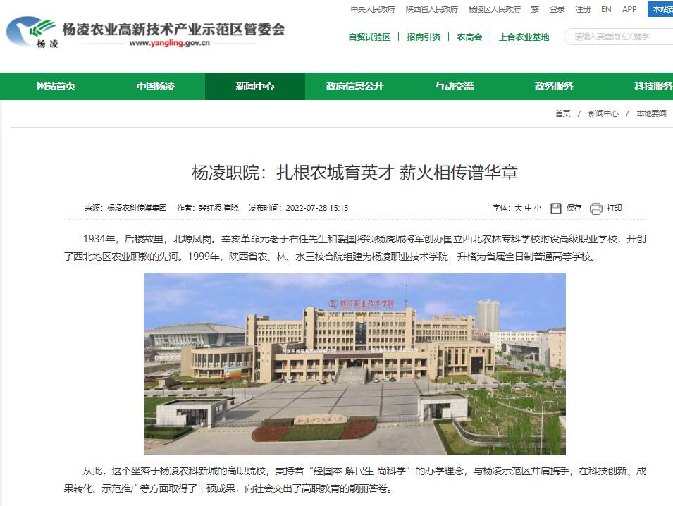 【杨凌示范区网】杨凌职院:扎根农城育英才 薪火相传谱华章