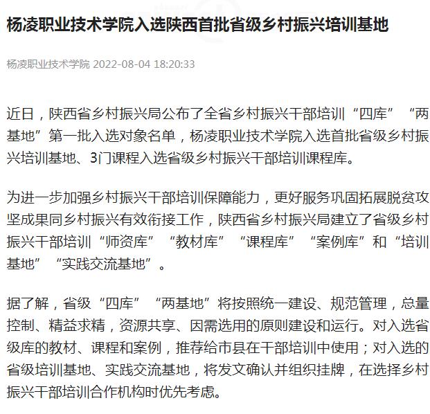 【陕西头条】杨凌职业技术学院入选陕西首批省级乡村振兴培训基地
