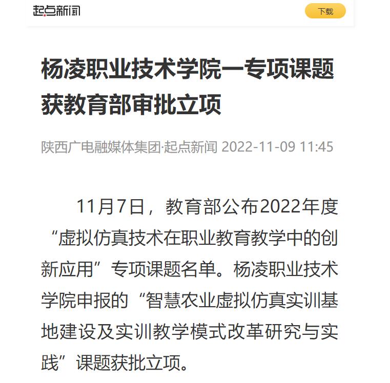 【起点新闻】杨凌职业技术学院一专项课题获教育部审批立项