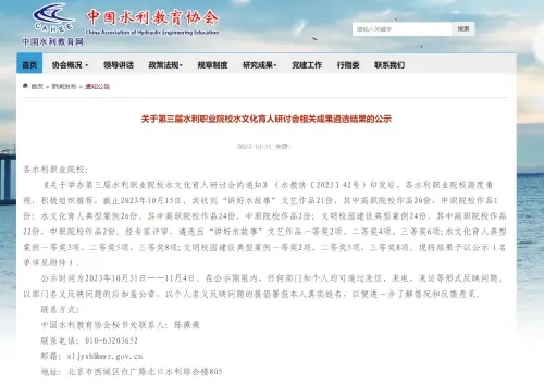 据悉,此次共有26所水利院校报送水文化育人典型案例,24所水利院校报送文明校园建设典型案例,经中国水利教育协会汇总初审、专家现场评审等程序,评选出水文化育人典型案例一等奖3项、二等奖5项、三等奖8项;文明校园建设典型案例一等奖2项、二等奖5项、三等奖8项。
