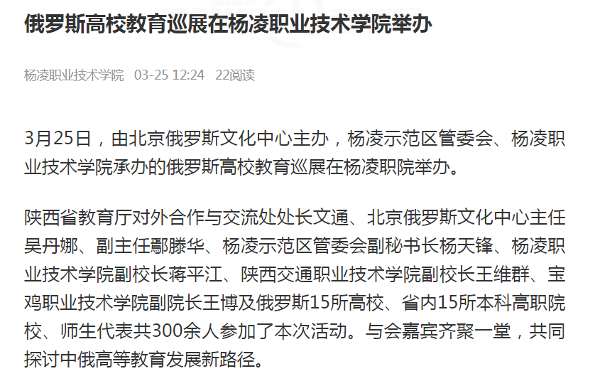 【陕西头条】俄罗斯高校教育巡展在杨凌职业技术学院举办