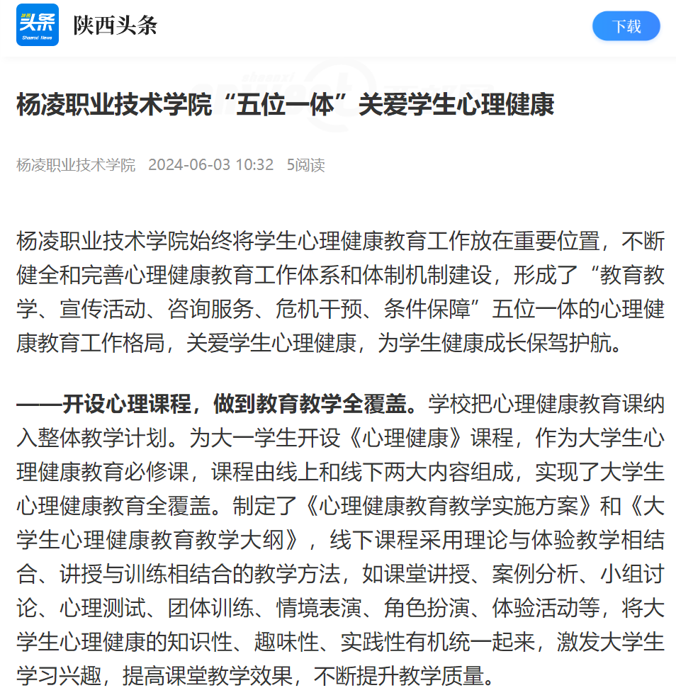 【陕西头条】杨凌职业技术学院“五位一体”关爱学生心理健康