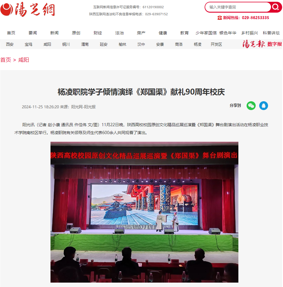 【阳光网】杨凌职院学子倾情演绎《郑国渠》献礼90周年校庆