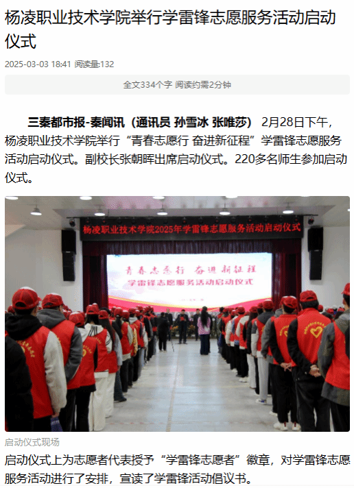 【三秦都市报】杨凌职业技术学院举行学雷锋志愿服务活动启动仪式