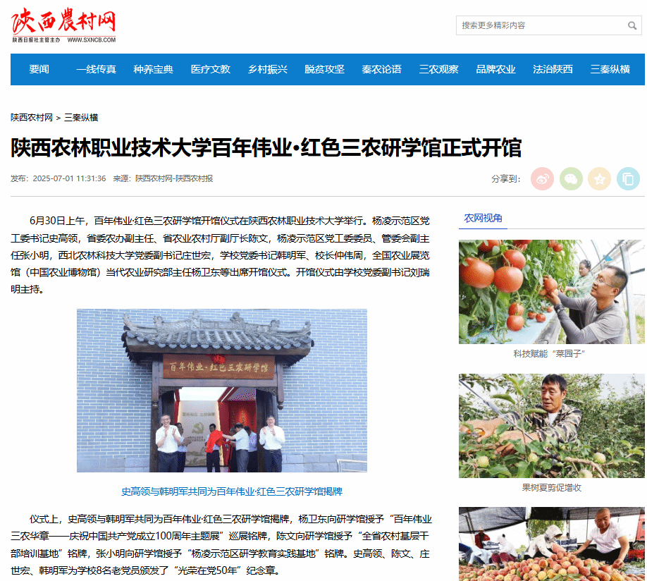 【陕西农村网】陕西农林职业技术大学百年伟业·红色三农研学馆正式开馆