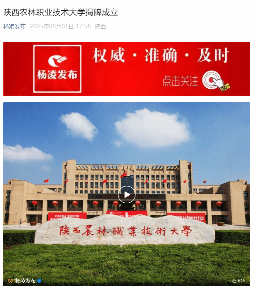 据了解,陕西农林职业技术大学肇始于1934年创办的国立西北农林专科学校附设高职,前身为1999年由原国家级重点中专陕西省农业学校、陕西省水利学校和省部级重点中专陕西省林业学校合并组建成立的杨凌职业技术学院,2025年6月,经教育部批准设立陕西农林职业技术大学,首批设立水利水电工程、建筑工程、现代通信工程、设施园艺、园林工程、动物医学6个本科专业。2025年,学校已成功招录首批本科生320人,生源质量和吸引力显著提升。
