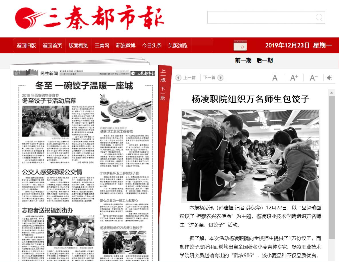 上一条:【陕西教育新闻网官方微博】杨凌职院万名师生包饺子过冬至
