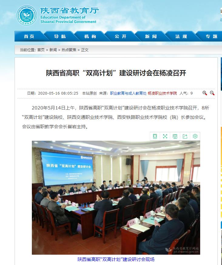 2020年5月14日上午,陕西省高职“双高计划”建设研讨会在杨凌职业技术学院召开,8所“双高计划”建设院校、陕西交通职业技术学院、西安铁路职业技术学院校(院)长参加会议。会议由省职教学会会长崔岩主持。