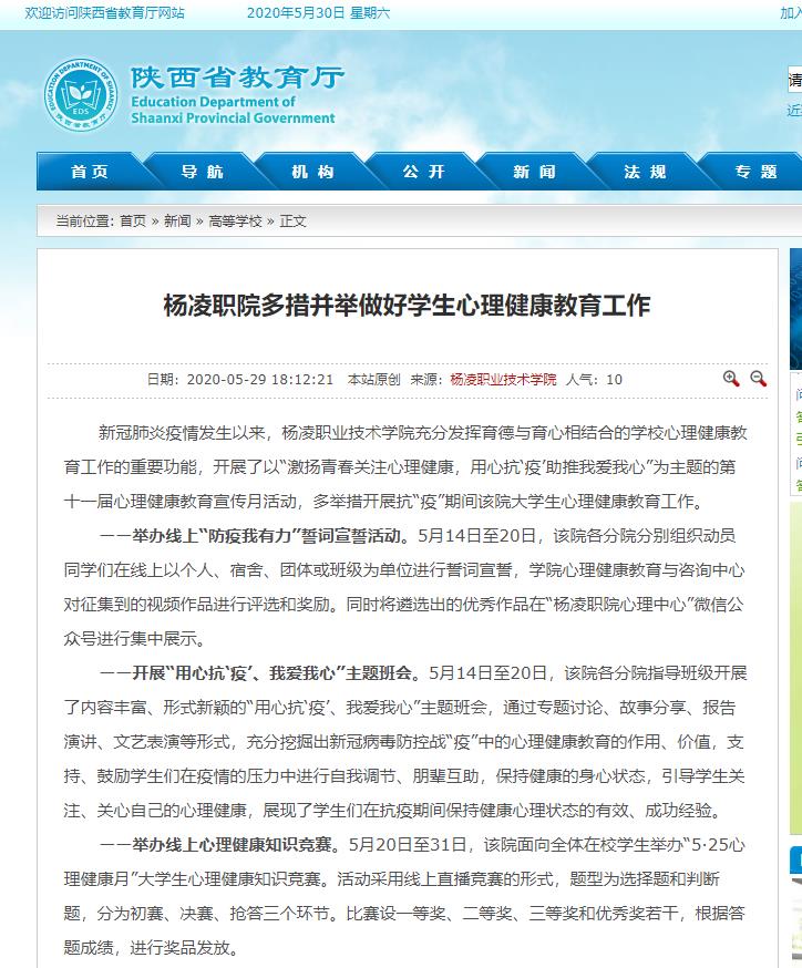 【陕西省教育厅】杨凌职院多措并举做好学生心理健康教育工作