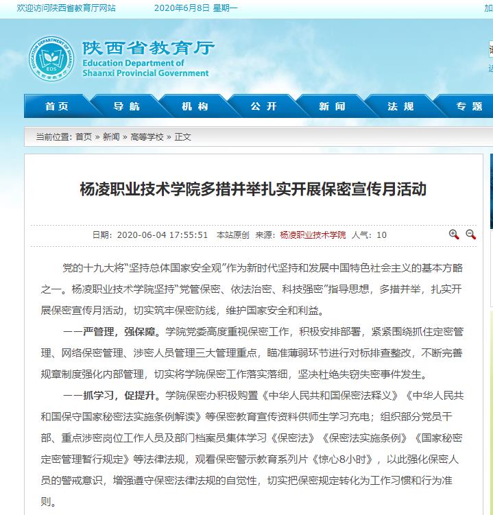 【陕西省教育厅】杨凌职业技术学院多措并举扎实开展保密宣传月活动