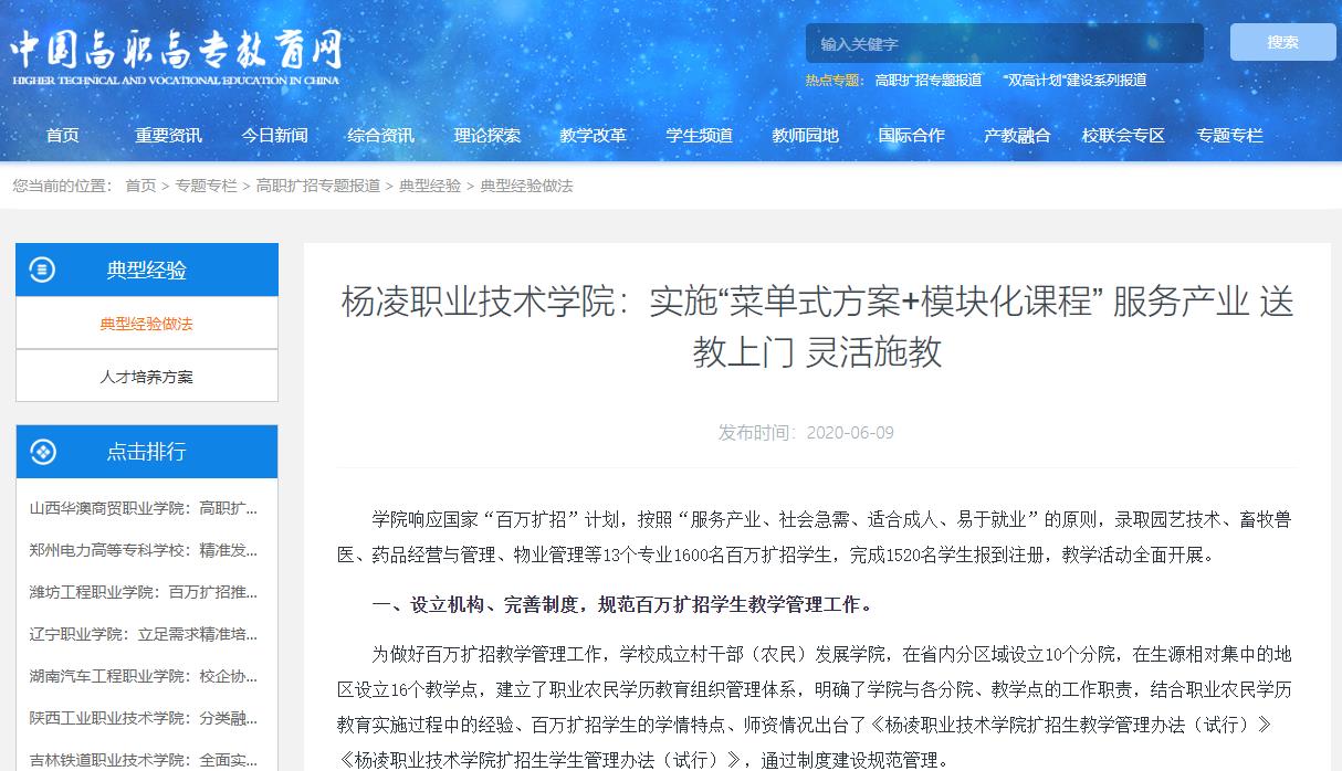 【中国高职高专教育网】杨凌职业技术学院:实施“菜单式方案+模块化课程” 服务产业 送教上门 灵活施教