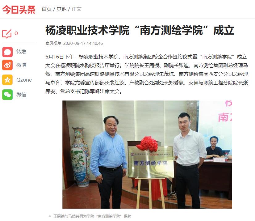 【今日头条】杨凌职业技术学院“南方测绘学院”成立
