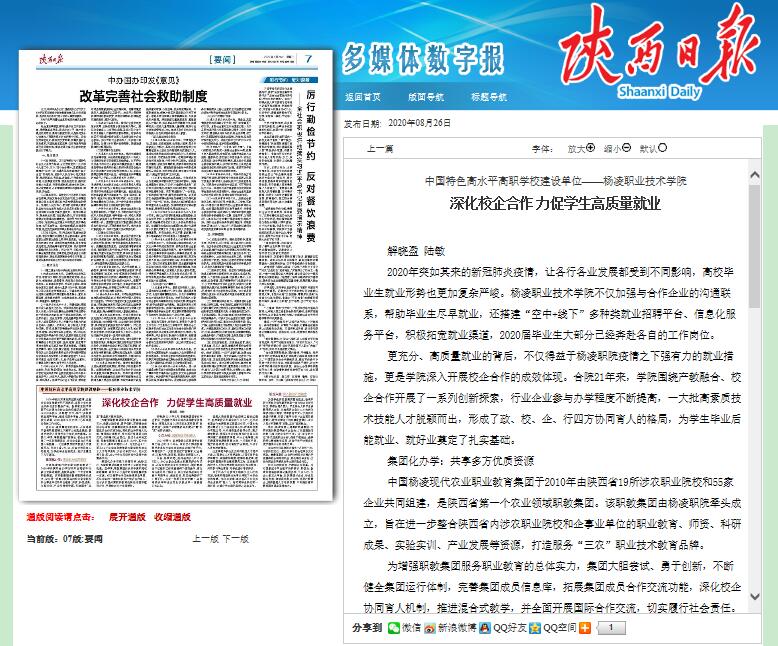 【陕西日报】杨凌职业技术学院:深化校企合作 力促学生高质量就业