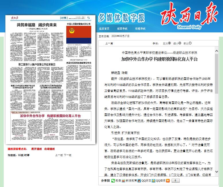 作为陕西高职教育的排头兵,在加强与“一带一路”沿线国家大学和教育机构合作方面,杨凌职院积极主动作为。不仅与杨凌示范区国际合作局主动联系对接,连续多年承担商务部及杨凌示范区“一带一路”沿线国家农业技术人员培训项目,累计为110多个国家培训了1400余名政府官员和技术人员,还建立了国际人才智库,与杨凌示范区、荷兰朗蒂斯教育集团建立三方合作培训基地,为其提供智力支持和技术援助。