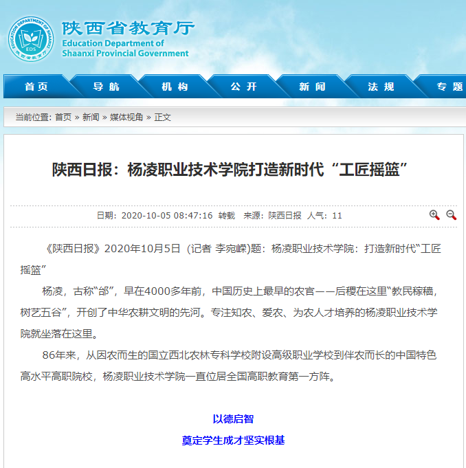 【陕西省教育厅】杨凌职业技术学院打造新时代“工匠摇篮”