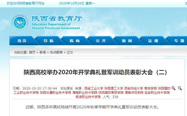 【陕西省教育厅】陕西高校举办2020年开学典礼暨军训动员表彰大会(二)