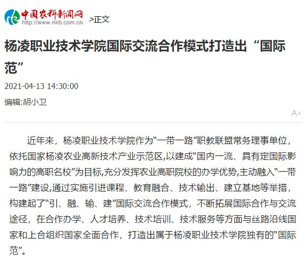 【中国农科新闻网】杨凌职业技术学院国际交流合作模式打造出“国际范”
