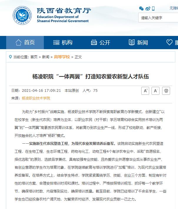 【陕西省教育厅】杨凌职院“一体两翼”打造知农爱农新型人才队伍