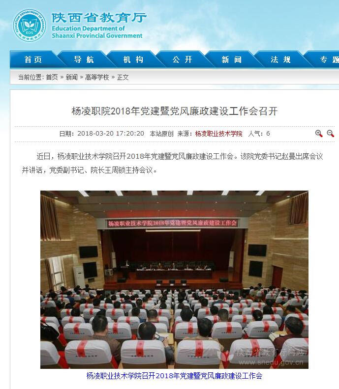 【陕西省教育厅】杨凌职院2018年党建暨党风廉政建设工作会召开