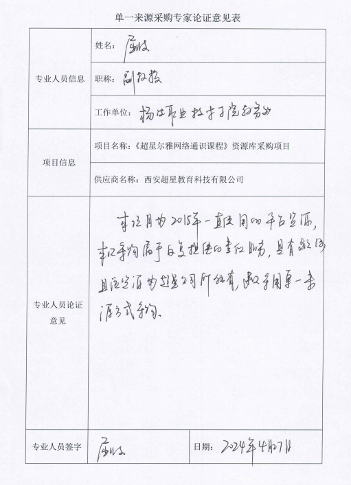 杨凌职业技术学院超星尔雅通识课采购项目单一来源谈判采购征求意见公示