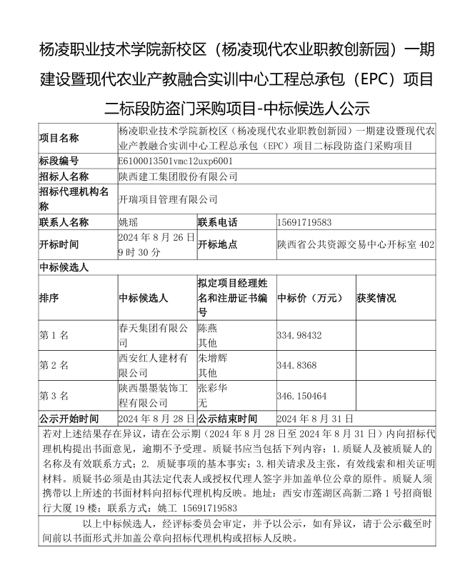 下一条:杨凌职业技术学院新校区(杨凌现代农业职教创新园)一期建设暨现代农业产教融合实训中心工程总承包(EPC)项目二标段洁具采购项目招标失败公告