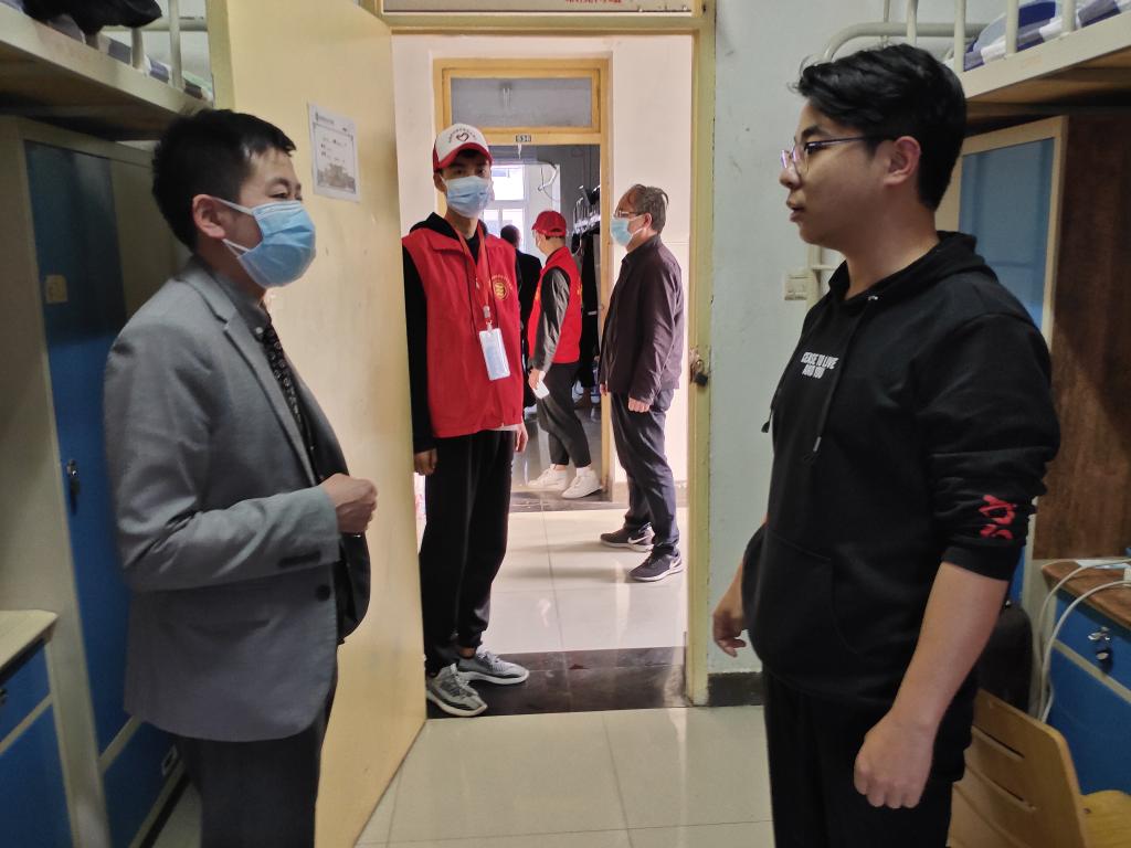 5月10日下午,信息工程分院党总支书记高掌平老师、学工办主任吴高潮老师以及学工办辅导员,进入学生宿舍看望返校同学。