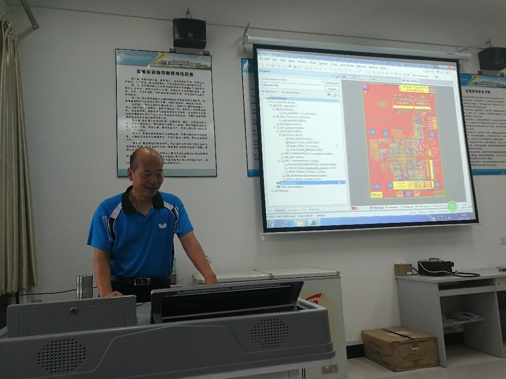 电子教研室马安良老师在NOD616给教研室老师培训AD15。