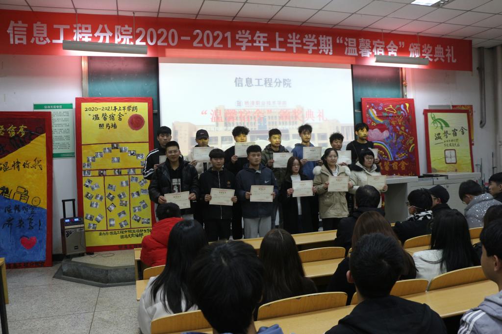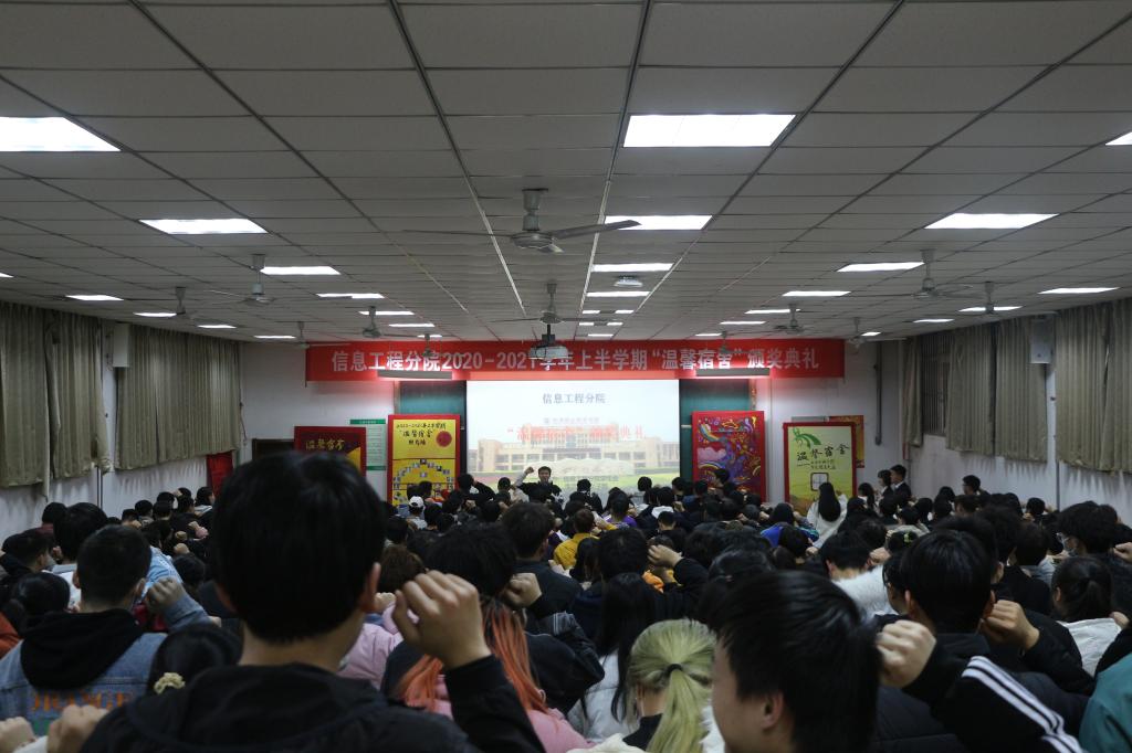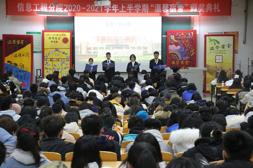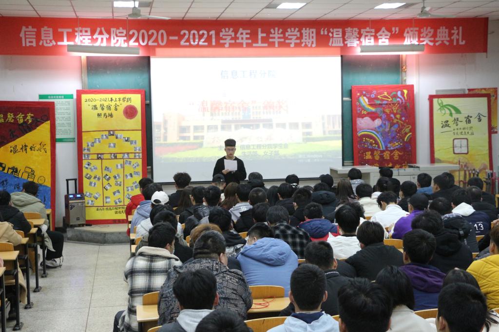 为深入推进“三全育人”方针,压实 “四位一体”人才培养,落实“纪律卫生安全教育月”活动方案,信息工程分院于2020年12月23日在NOB107举办了2020—2021学年第一学期“温馨宿舍”颁奖典礼。本次活动由分院学生会生活部和女子部联合举办,270余名宿舍代表参加。