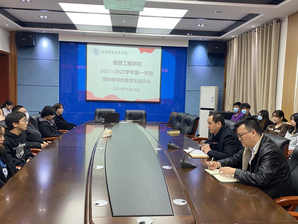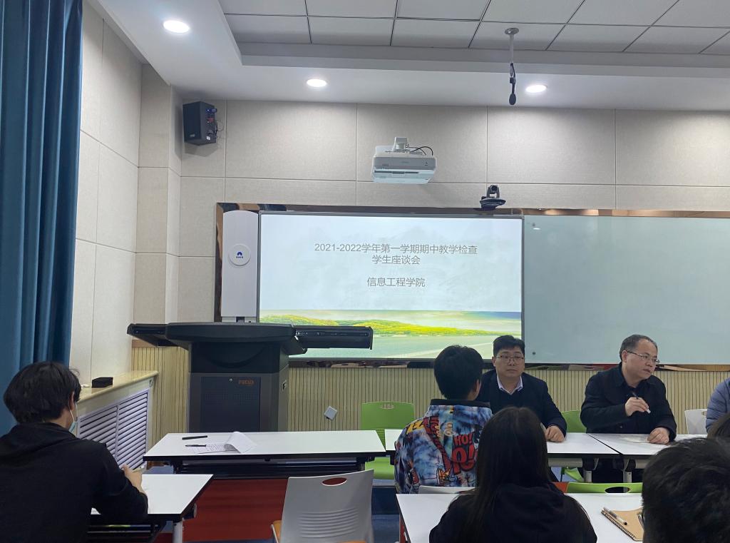 2021年11月10日晚,信息工程学院分别在南、北校区召开期中教学检查学生座谈会,陈高锋院长和吴高潮副书记分别带队参加。