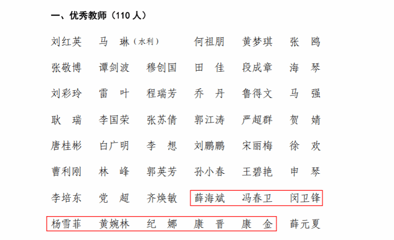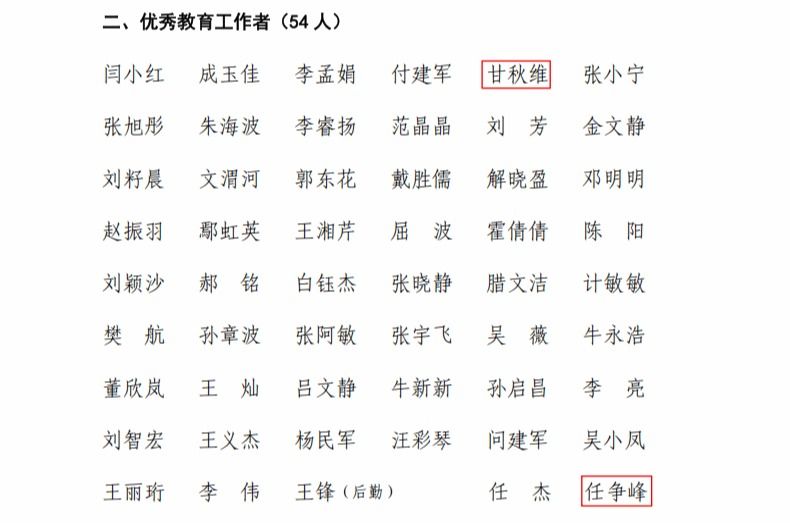2025年9月24日,陕西农林职业技术大学发布《关于表彰优秀教师、优秀教育工作者的决定》(陕农大党发〔2025〕12号),我院共有10位教师获得表彰。其中,薛海斌等8名教师获评“优秀教师”,任争锋、甘秋维2名教师获评“优秀教育工作者”。