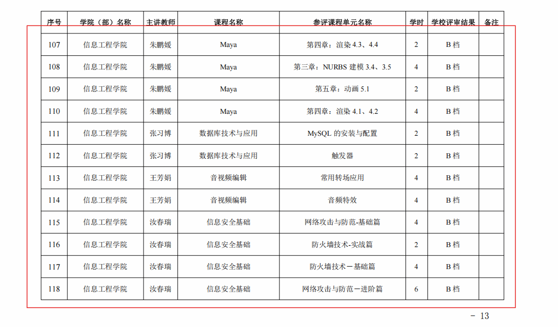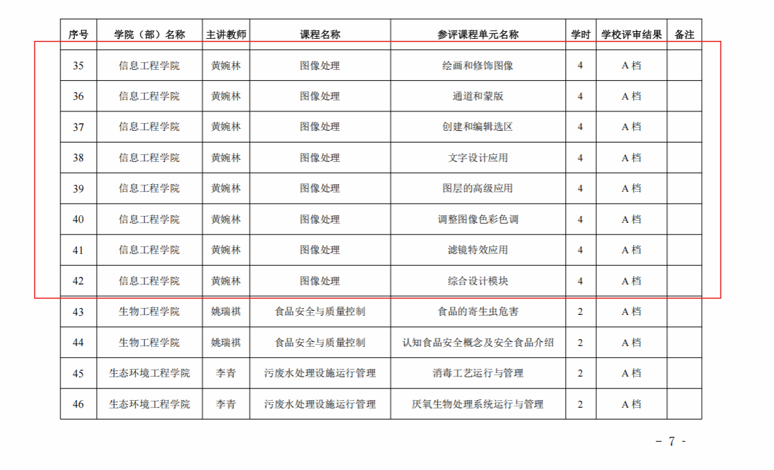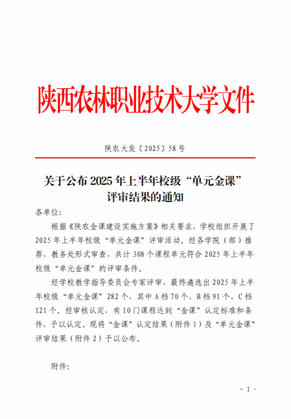12月15日,陕西农林职业技术大学2025年下半年校级“单元金课” 评审结果公布,信息工程学院教师黄婉林主讲的《图像处理》、康金主讲的《动画素描》课程获得校级“金课”认定。本次共有65个“单元金课”评审通过,其中A档16个,B档22个,C档27个。