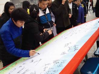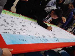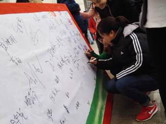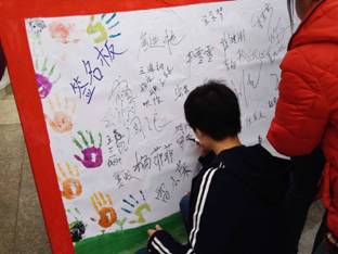 活动最后,由全体与会学生在签名板上面签下自己的名字。表达自己保护环境的决心和毅力。