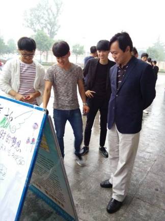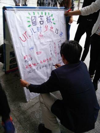 学院团委副书记孙承俊,饶有兴趣的与同学们一起猜谜分享快乐,并在“梦想墙”上认真签下了“做同学们的好朋友”的愿望。