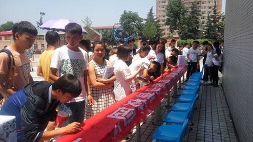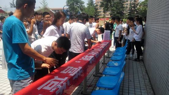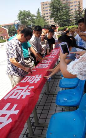 宣誓活动后,同学们踊跃在印制有“摆脱手机依赖,营造书香校园”的横幅上签名留念,以勉励自己,激励他人,共同为一个丰富多彩的青春而努力奋斗。
