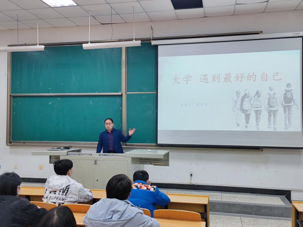 本次讲座中,郭雄伟老师从学习、规划自我、人际交往及自我认识等四个方面的适应性教育做了简单综述,谈到要在社会角色、奋斗目标、思维、学习、生活、交友方式等方面做出转变,帮助同学们适应大学生活、处理人际关系、规划生活蓝图,鼓励和引导同学们增强自信,积极地适应大学生活,遇见最好的自己。