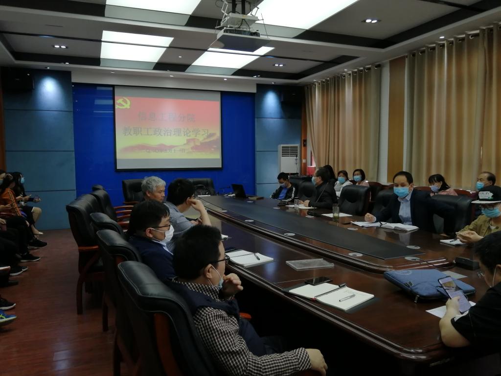按学院党委宣传部安排部署,5月11日下午在秦风楼四楼会议室,信息工程分院党总支组织全体教职工开展了政治理论集中学习活动。